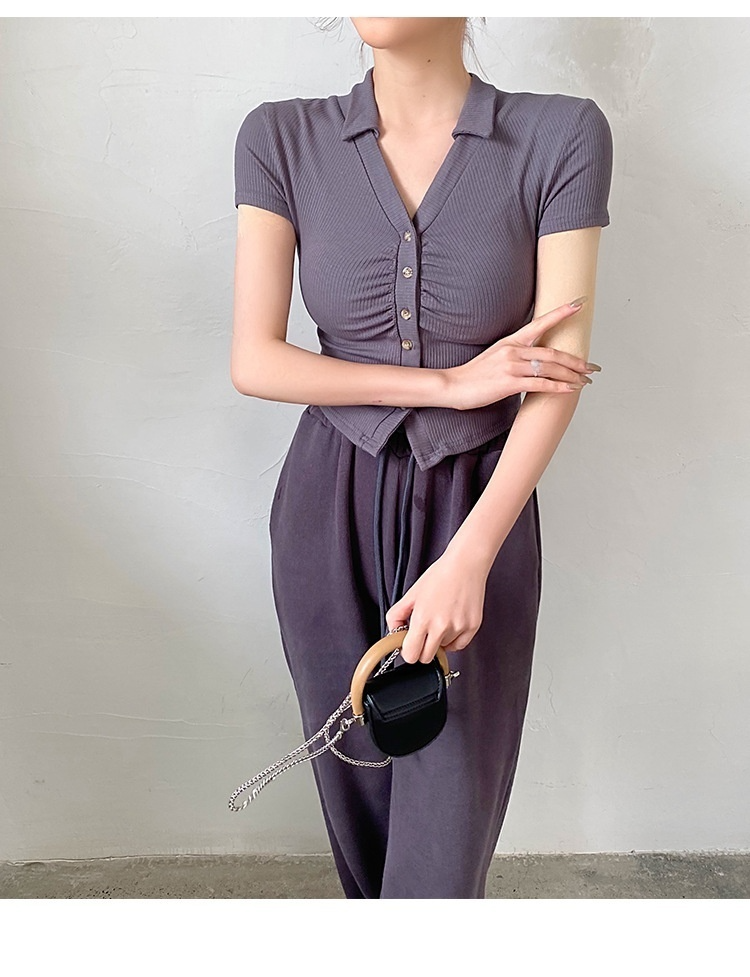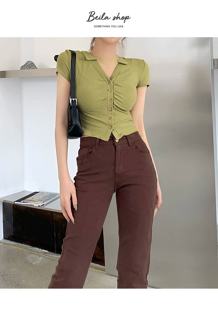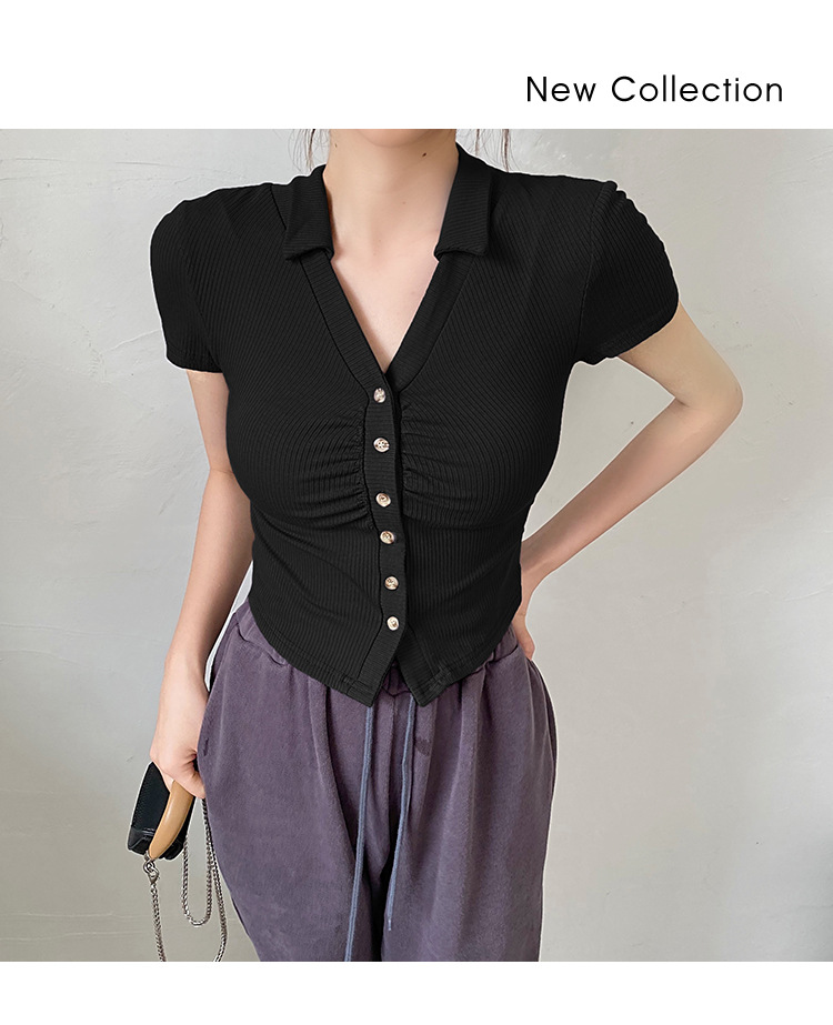 여성 여름 코튼 V넥 크롭 탑 정면 착용 이미지