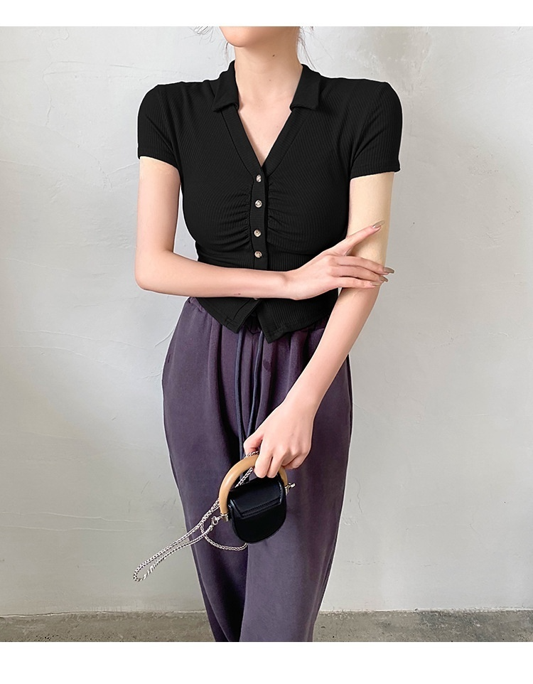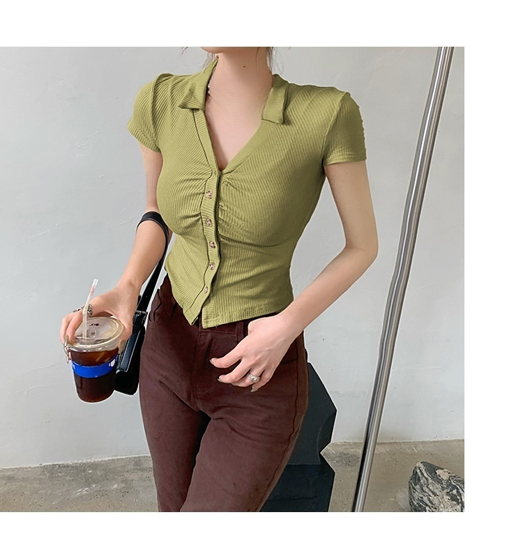스타일리시한 V넥 디자인의 여성 여름 탑