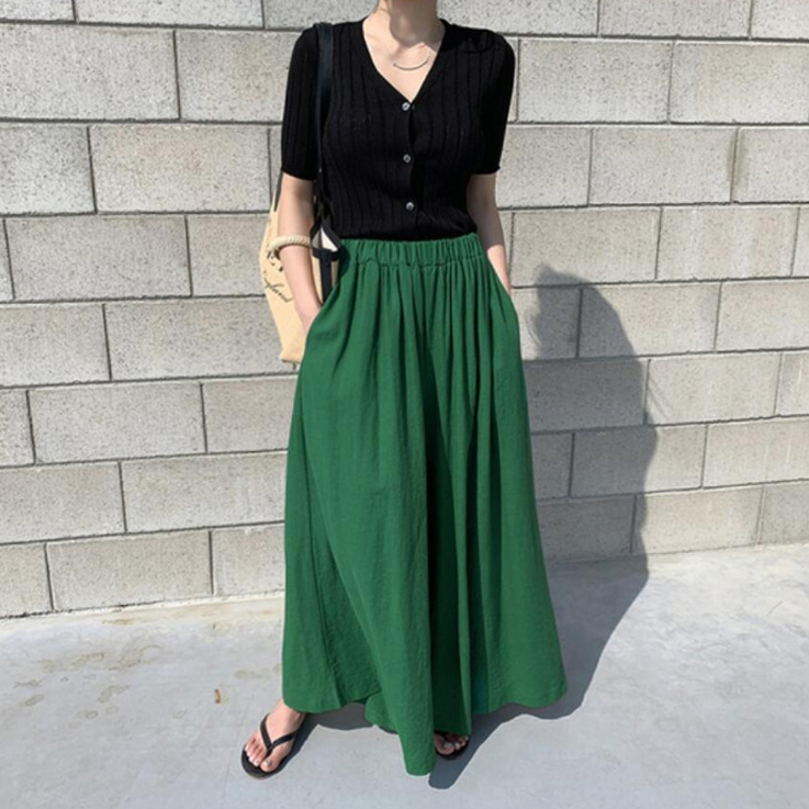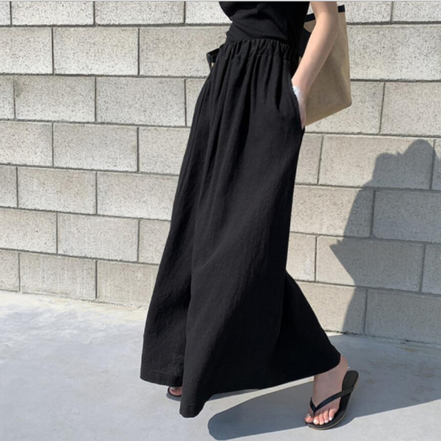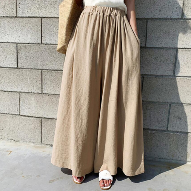 린넨 혼방 와이드 팬츠 허리 밴딩