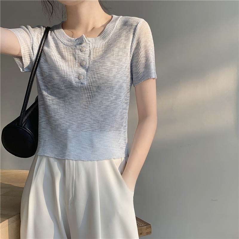 통기성 좋은 리넨 스웨터 소재 확대 사진