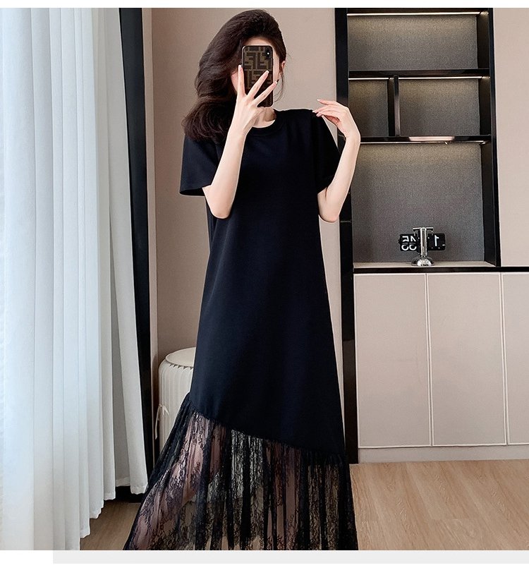 여성스러운 레이스 패치 루즈핏 원피스 전면 이미지